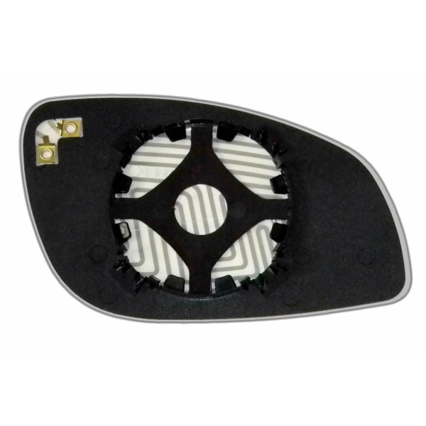 Сменный элемент зеркала сферической формы, которое устанавливается в корпус наружного зеркала. Благодаря специальной выпуклой геометрии поверхности элемента зеркала водитель получает расширенный угол обзора и эффективный контроль за дорожной ситуацией в слепых зонах. На изображении элемент зеркала с обратной стороны.