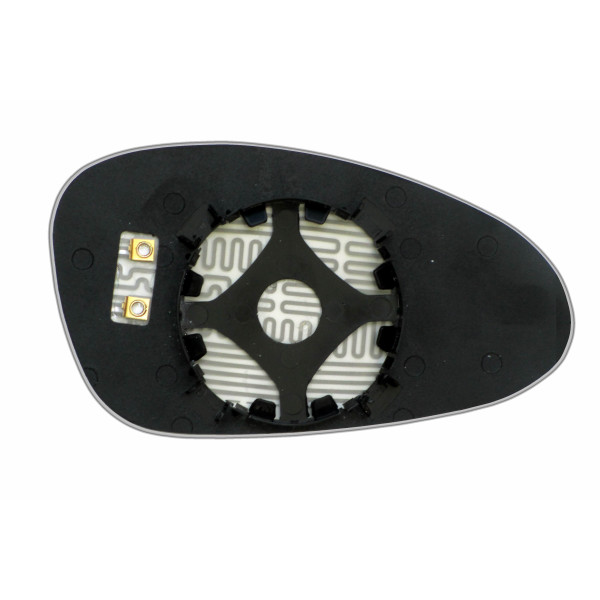 Сменный элемент зеркала сферической формы, которое устанавливается в корпус наружного зеркала. Благодаря специальной выпуклой геометрии поверхности элемента зеркала водитель получает расширенный угол обзора и эффективный контроль за дорожной ситуацией в слепых зонах. На изображении элемент зеркала с обратной стороны.