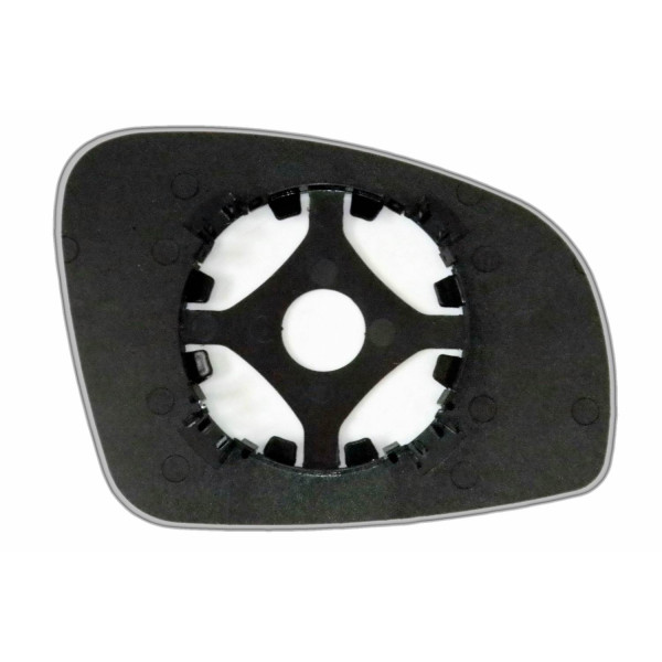 Сменный элемент зеркала сферической формы, которое устанавливается в корпус наружного зеркала. Благодаря специальной выпуклой геометрии поверхности элемента зеркала водитель получает расширенный угол обзора и эффективный контроль за дорожной ситуацией в слепых зонах. На изображении элемент зеркала с обратной стороны.