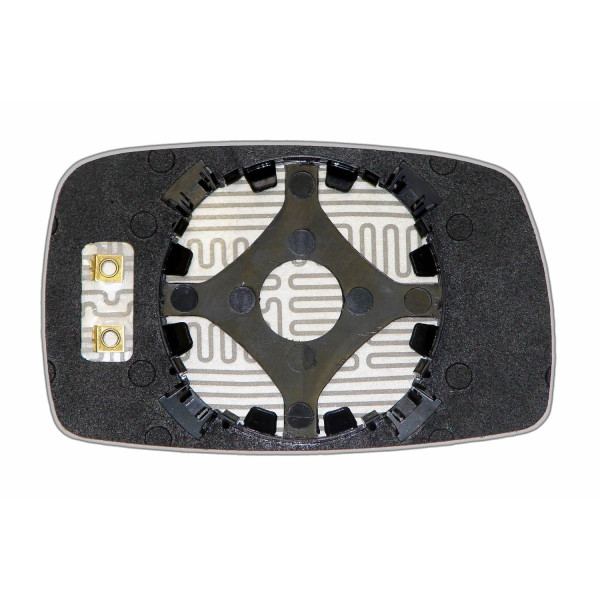 Сменный элемент зеркала асферической формы, которое устанавливается в корпус наружного зеркала. Благодаря специальной более выпуклой геометрии поверхности элемента зеркала водитель получает расширенный угол обзора и эффективный контроль за дорожной ситуацией в слепых зонах. На изображении элемент зеркала с обратной стороны.